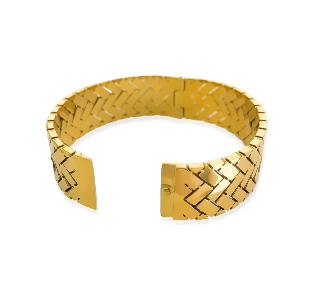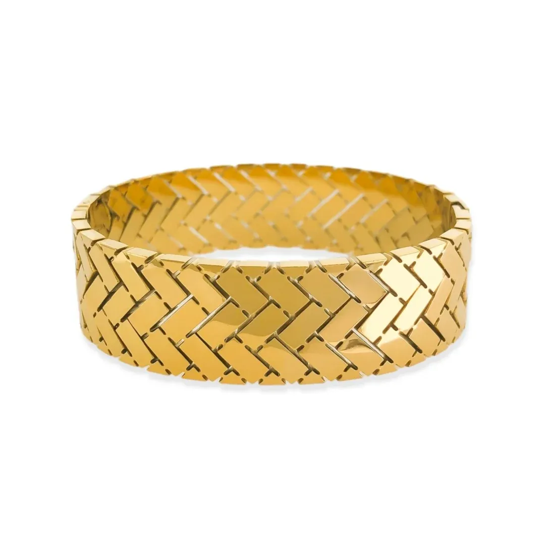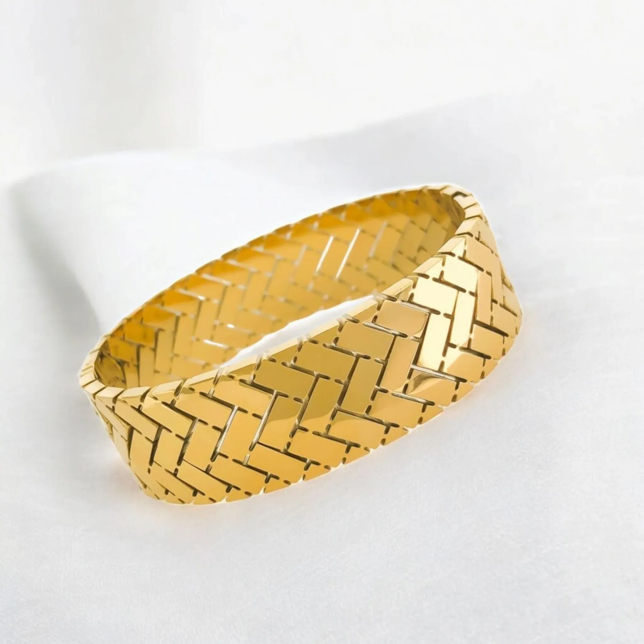 Tags: 18kgoldplated, Antitarnish, Bangle, Bracelets, Chunky, Dailywear, Hypoallergenic, Officewear, Pattern, Waterproof, Zig Zag