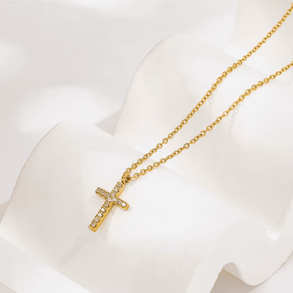 Tags: 18kgoldplated, Anti-Tarnish, Beach, Beachwear, Bling, Christ, Christian, Cross, Crucifix, diamond, Faith, Hypoallergenic, Iced Out, Jesus, Lord, Micro pavé, Necklaces, Waterproof