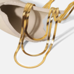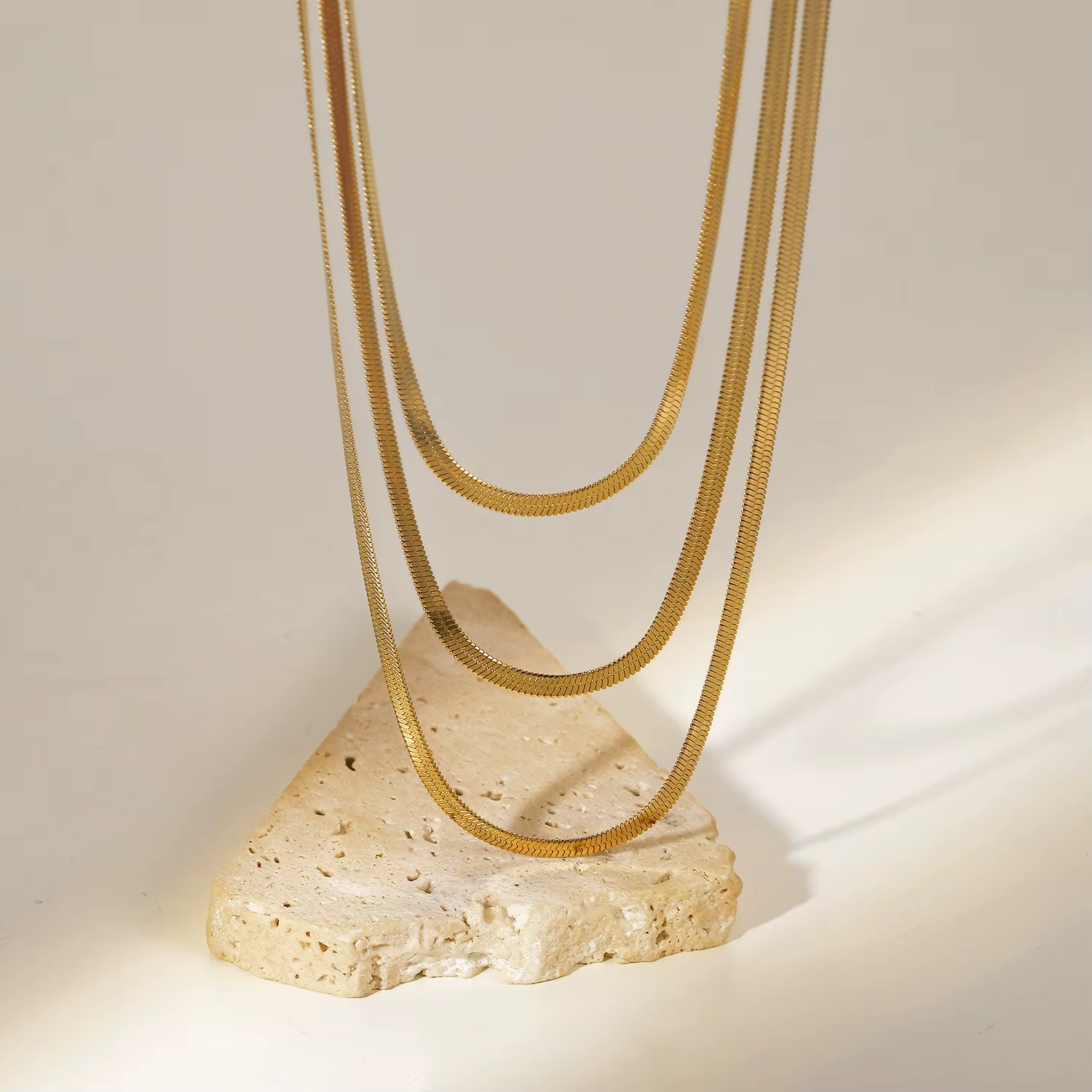 Triple Stacked Flat Herringbone Chain Necklace.