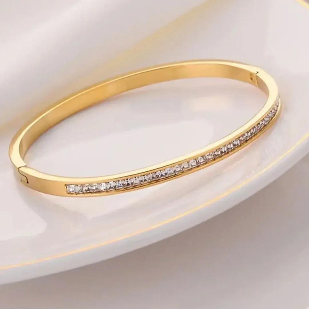 Tags: 18kgoldplated, Antitarnish, Bangle, Bling, Bracelets, Cubic Zirconia, Dailywear, Hypoallergenic, Officewear, Sparling, Waterproof, Zircon