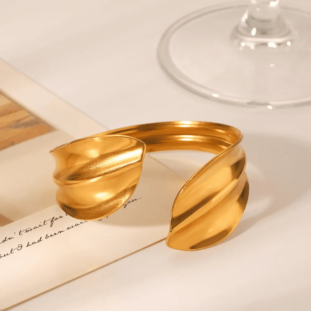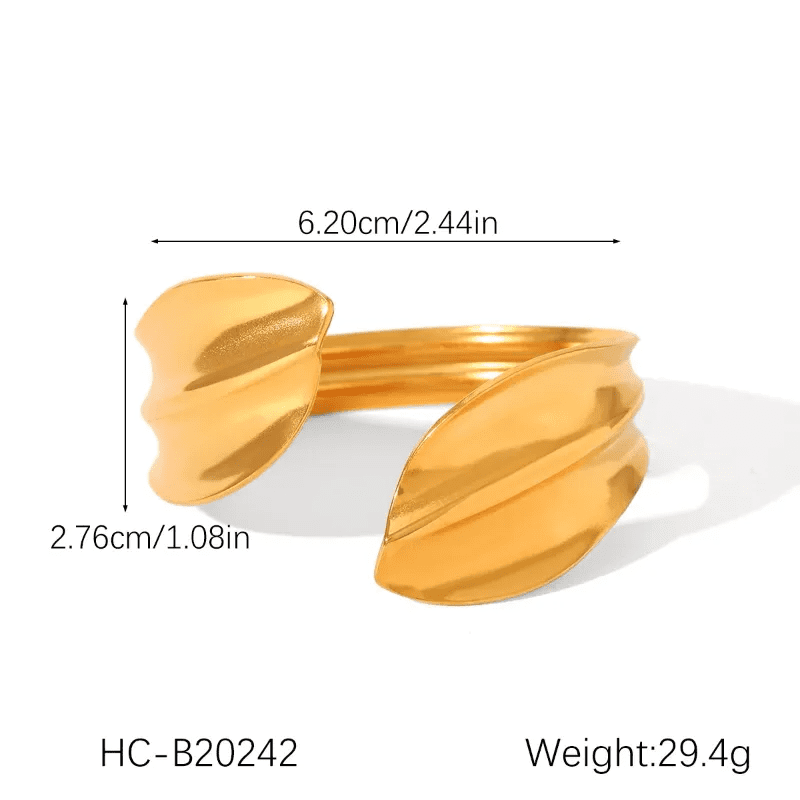 Statement, Leaf Shaped Cuff Bangle Bracelet.